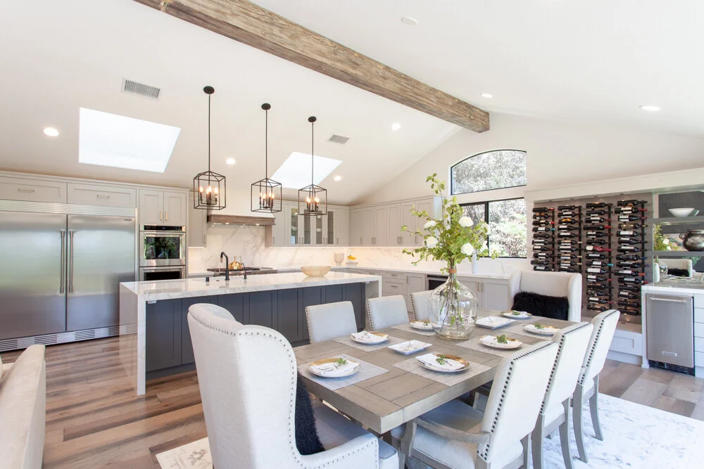 Mar Vista was a 350 Sq ft room addition inclusive of a full kitchen remodel outfitted with a 10’ porcelain slab with waterfall kitchen island, custom kitchen cabinetry and 10’ wine wall. Inclusive of a full bathroom remodel , family room extension, new laundry pantry with La Cantina folding doors. Enhanced all new LED recessed and under cabinet lighting and energy efficient updates to the home with a new electrical panel, and tankless water heater. All new wide plank wood flooring was updated throughout the residence along with the fireplace.